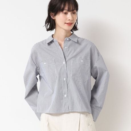 大きめの胸ポケットがポイントのクロップド丈シャツ。