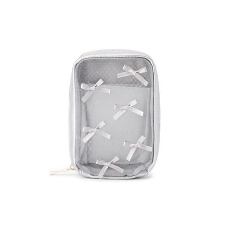 前面は中身の小物を探しやすい、透けるメッシュ素材。