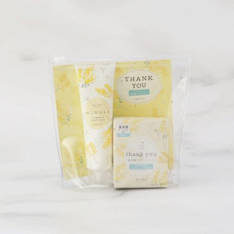 ハンドクリームとバスタブレットがセットになってポーチに入ったセット。