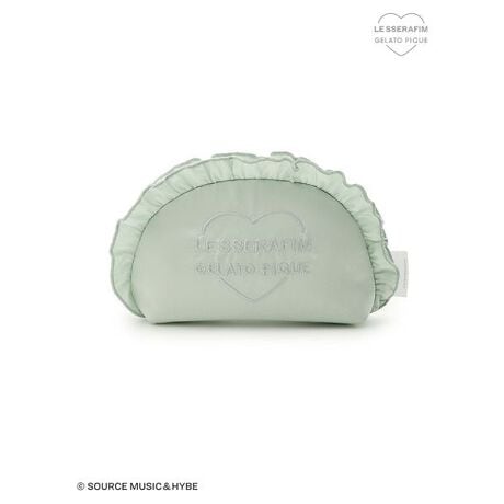 LE SSERAFIM(ルセラフィム)との特別なコラボレーションアイテムが初登場。ハートとロゴの刺繍とフリルを効かせたサテンポーチは持ち運びしやすいサイズ感です。色はメンバーカラーに合わせたライトグレー、ピンク、グリーン、ブルー、レッドの5色展開です。