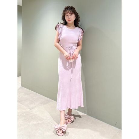 柔らかな風合いの薄手ニットに、メローなフリル袖をあしらったワンピースです。