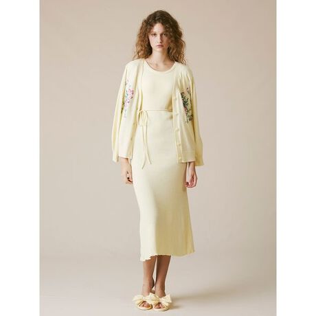 柔らかな風合いの薄手ニットに、メローなフリル袖をあしらったワンピースです。