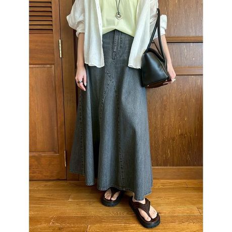 <b>【古着をリメイクしたようなデザインが新鮮!たっぷり贅沢にデニムを使ったスカート】</b>