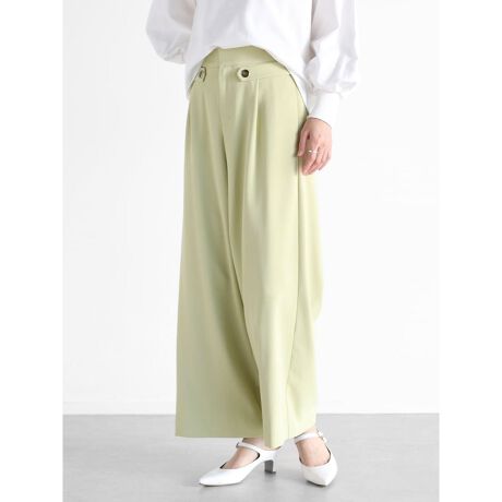 さらりとしたタッチの生地とウエストのタックデザインが相まって、すっきりとした綺麗なシルエットに。