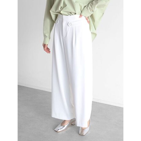 さらりとしたタッチの生地とウエストのタックデザインが相まって、すっきりとした綺麗なシルエットに。