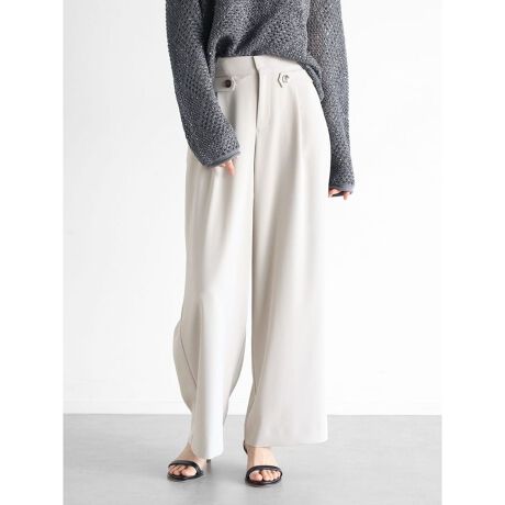 さらりとしたタッチの生地とウエストのタックデザインが相まって、すっきりとした綺麗なシルエットに。