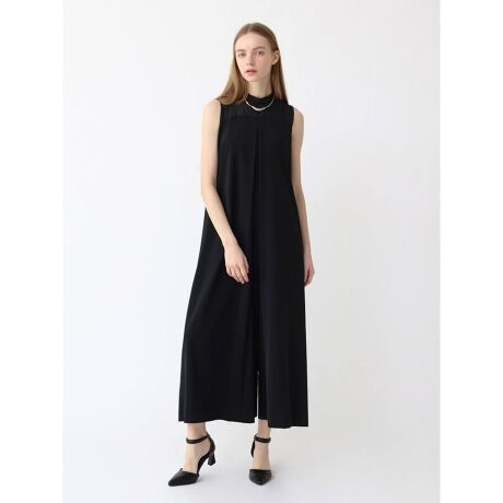 Agaロングセラーのオールインワン。胸下から深く入ったタックやボトルネックのバランスが、シンプルながらスタイリッシュかつモードな印象に仕上がるオールインワン。裾にかけてのゆるやかなフレアラインが大人の余裕を醸し出し、デコルテの上品なシアー感が控えめながらもさり気なく抜けをもたらすポイントに。合わせる小物や羽織りによってオケージョンからフォーマルまで幅広いシーンに対応の出来る一着です。