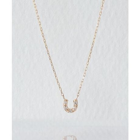 極小サイズの馬蹄に極小サイズのダイヤモンドを留めてしあげたK10イエローゴールドネックレス。