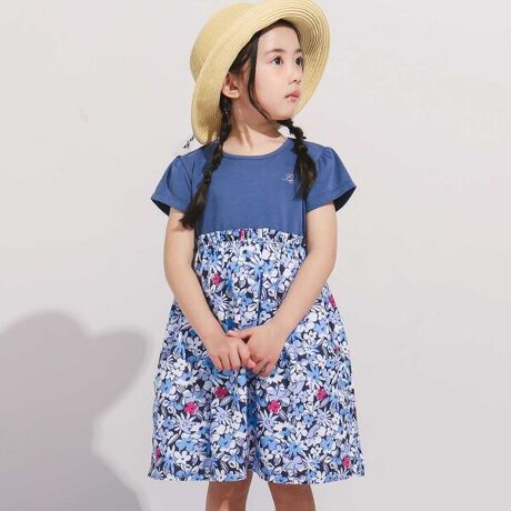 【お揃い】ドビーフラワーガーデンプリント切り替えワンピース(90~150cm)