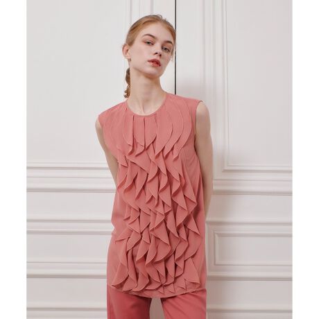 甘くなり過ぎないカットのフリルは動きのある重なりで、品の良い華やかさと女性らしさが特徴。