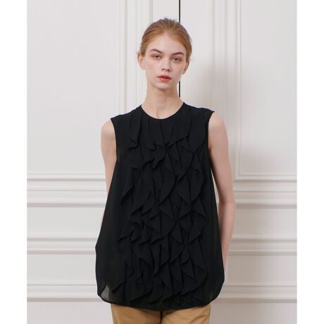 甘くなり過ぎないカットのフリルは動きのある重なりで、品の良い華やかさと女性らしさが特徴。