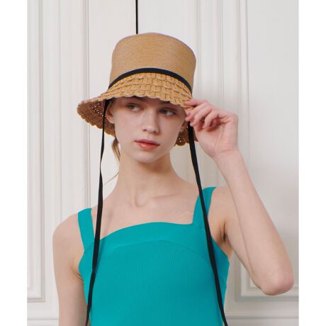 ボディと同色のスカラップのようなブリムで切り替えたデザインが特徴のバケットハット。