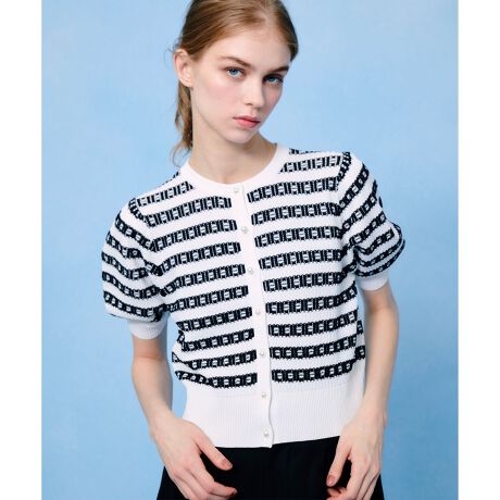 ボーダー×リボン模様のように編まれた特別な編地のニットカーディガン。