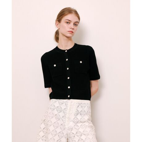 【LOULOU WILLOUGHBY】ポケット付半袖カーディガン