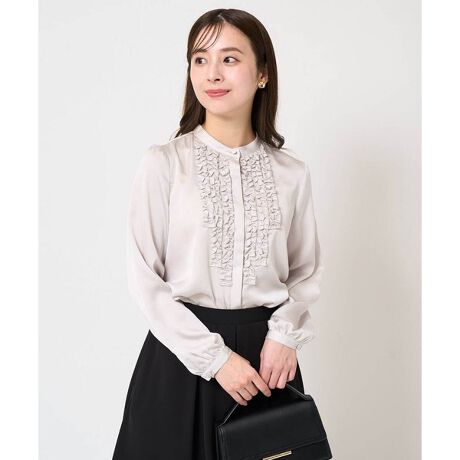 【小さいサイズ】フリルディティールサテンブラウス/洗える
