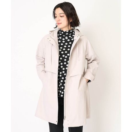 春のカジュアルなミドル丈のフーデッドコートです。ウエストと裾にドローストリングにしているので、自由自在にシルエットの変化をお楽しみいただけます。また、上見頃のヨーク部分をふらし仕様にしているので、ウエストを絞っても程よくゆとりが入り、スタイルアップが望めます。適度なハリ感があり、カジュアルでありながらも大人っぽく、品の良いアウターです。全体的にややゆとりのあるサイジングなので厚手のニットも着込めて、春始めの肌寒い時期からロングシーズン着回しの効くアイテムです。