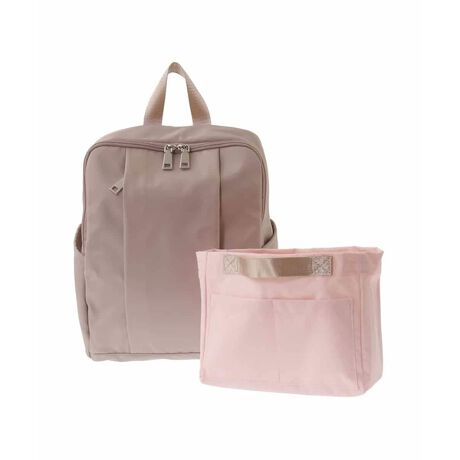 リュック本体にポケットが合計8つあり、そこにインバッグをプラスすると細かな小物類も沢山入れられる収納力が魅力。抜群の収納力ながら小さめサイズなので、お身体が華奢な方や、お荷物をコンパクトにまとめたい方におすすめです。500mlペットボトルは縦向き横向きのどちらでも余裕を持って入ります。