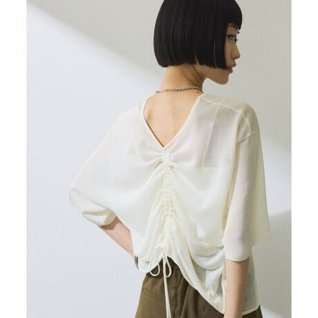 中心のドロスト分量はスタイリングに合わせて調整可能なので、様々なレイヤードを楽しめるアイテム。