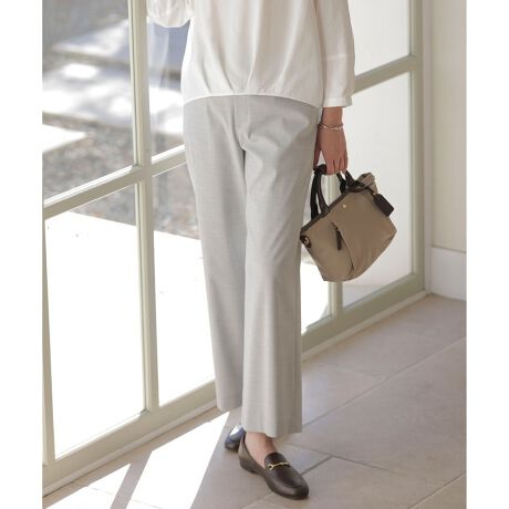 ■デザインストレートラインでややワイドシルエットのパンツ。フロントにタブ&釦ディテール、後ろウエストベルトはゴム入りで穿き易い作りになっています。トップスをインでもアウトでもポイントとなるフロントポケット口のパイピングテープもワンポイント。シンプルなスタイリングから女性らしい着こなしまで幅広く活躍してくれる、1着は持っておきたいアイテムです。裏なしです。