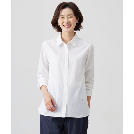 ■デザイン細部まで拘ったトラッドらしいシャツ。フィットしすぎない程良くゆったりとしたストレートシルエットに、衿の高さやバランスを見て着心地の良いシャツに仕上げました。さり気ない左身頃裾部分に入ったワンポイント刺繍がアクセント。ジャケットインでも1枚着でも、ビジネスからカジュアルまで幅広く使える万能アイテムです。