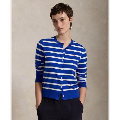 コームドコットン混紡で仕立てたストライプ柄のカーディガンセーター。シグネチャーのポニー刺繍をあしらい、アイコニックに仕上げたアイテム。Ralph Laurenは、コットン栽培を国際的に改善するためにBetter Cotton(TM)と連携・リラックスフィット / 腰丈・リブニットのクルーネック / ボタン付き前立て / 長袖、リブニットのカフス / リブニットの裾左胸にシグネチャーのポニー刺繍・Better Cottonは農業従事者に対し、水の効果的な利用、土壌と自然生息地の健康に対する配慮、有害性の高い化学物質の利用の削減、適正な労働原則の実施について、トレーニングを提供・本商品は物質収支式に則って材料を調達しているため、全ての製品にBetter Cottonが含まれない可能性があります。・モデル身長178cm、着用サイズS※注意:柄の配置は、商品によって異なります。 【素材】・本体:綿 81%、ナイロン 16%、ポリウレタン 3% 装飾部分を除く【生産国】中国