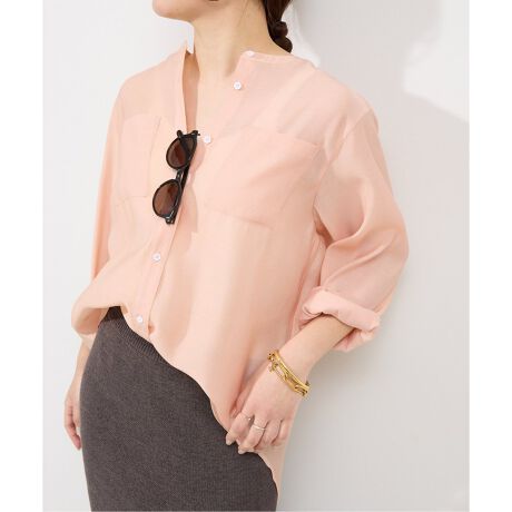 春らしいカラーでお作りしたシアーシャツ。