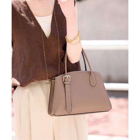 シンプルながら、持ち手の付け根のバックルデザインがアクセントになってくれます。