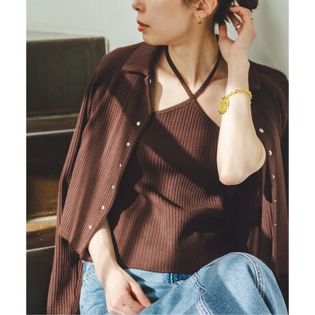 トレンド感のあるホルターネックを採用したタンクトップ。