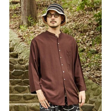 [型番:76R-5103-2025]麻入りの素材で肌触りの気持ちいいメンズシャツ。後ろから来る魔の手を見張り、守ってくれる役割があるとされる「背守り」のデザイン。無地なのでコーディネートしやすく、着まわしが効く一枚です。
