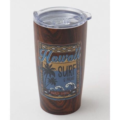 [型番:4CIP5102-2025]ビンテージ風にハワイのビーチのサーフシーンを表現したタンブラー。ウッドデザインがハワイのサーフシーンを彷彿とさせる。生活のワンシーンにハワイの彩りを。熱湯使用 ○/電子レンジ×/オーブン使用× /直火使用× /家庭用食器洗浄器×容量550ml