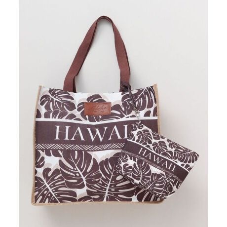 [型番:47BP5102-2025]ハワイを感じるヴィンテージ風のトートバッグとポーチのセット。サイドのジュート素材がハワイの自然を感じるデザイン。セットのポーチは別々でも単体でも使用できます。
