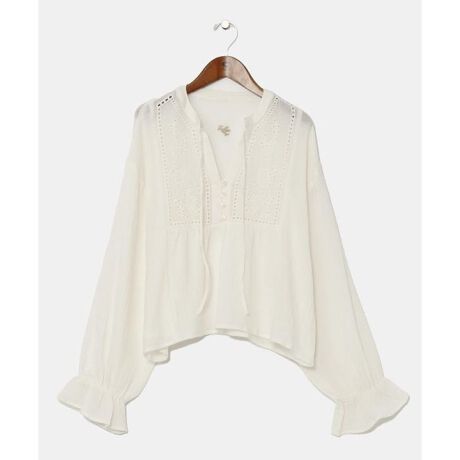 [型番:IGW-5106-2025]胸元にシフリー、背中に鳥の刺しゅうがあしらわれたブラウス。ウズベキスタンの青の都からインスパイアされた爽やかな色展開。透け感のある軽やかな素材感で、レイヤードコーデも可能。