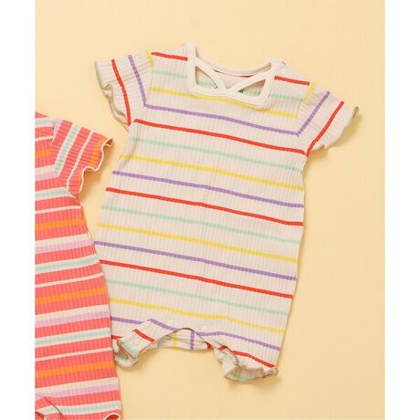 BREEZE(ブリーズ)のカバーオール・ロンパース「【リンク】メロウリブフリルロンパス」は、小さいお洋服にこだわりを詰め込んだ大人顔負けのデザインが人気!出産祝いのギフトにもおすすめです♪