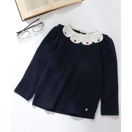 apres les cours(アプレレクール)の長袖Tシャツ「花びら襟ハート刺繍Tシャツ」は、ナチュラルなスタイルにさりげなくデザインをプラスしたおしゃれアイテム*