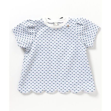 apres les cours(アプレレクール)の半袖Tシャツ「スカラップハートジャガードTシャツ」は、ナチュラルなスタイルにさりげなくデザインをプラスしたおしゃれアイテム*