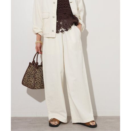 ワイドレッグシルエットがポイントのイージーパンツ。