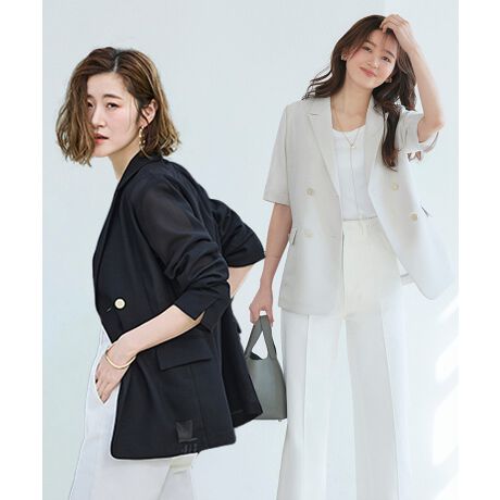上品で透けすぎないパナマ織素材で仕立てたトレンド感のあるテーラードジャケット