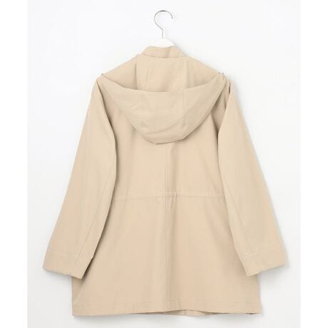 裾に向かって広がる、テントラインシルエットのフーディーアウター。フードは取り外し可能で、シンプルなスタンドカラーにもなる2WAY仕様のため、スタイリングの幅が広がります。袖口の見返し端にテープを施しているため、袖口をめくると配色ディティールが見えるのもポイントです。ウエスト内側のドロストは後身頃のみで、バックスタイルをスタイリングに合わせて調節できます。身幅にゆとりがあり、ネックラインもカバーできるデザインのため、インナーを選ばず、やや短めのレングス感は様々なシルエットのボトムスと合わせられるバランスに仕上げました。裏地なしです。