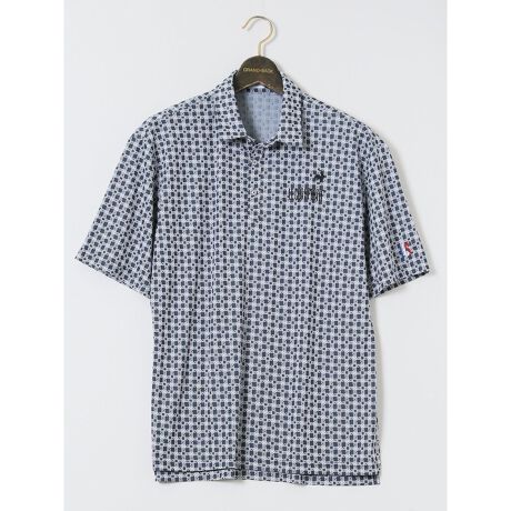 モノグラムジャガードの総柄がゴルフ場のグリーンに映える、半袖ポロシャツです。左袖のトリコロールカラーの刺繍、左胸のブランドロゴと雄鶏の刺繍、動きやすさを考慮した裾スリットがポイント。ゴルフシーンはもちろん、普段着としても活躍してくれます。