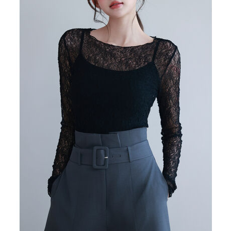 シアー感際立つレース生地でほどよく大人セクシー。フィット感がありながらもストレッチ性抜群なので着脱も楽ちんです。一枚でもインナーとしても着回せます。