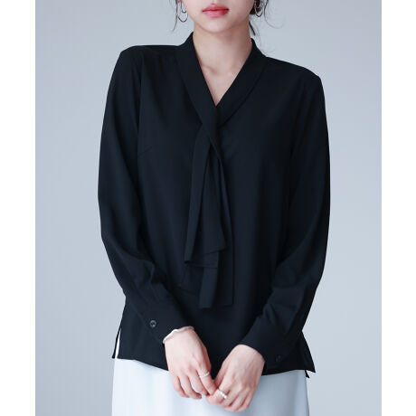 とろみ生地ボウタイブラウス