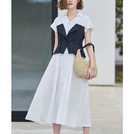 ビスチェ風に配色で切り替えたデザインシャツワンピ