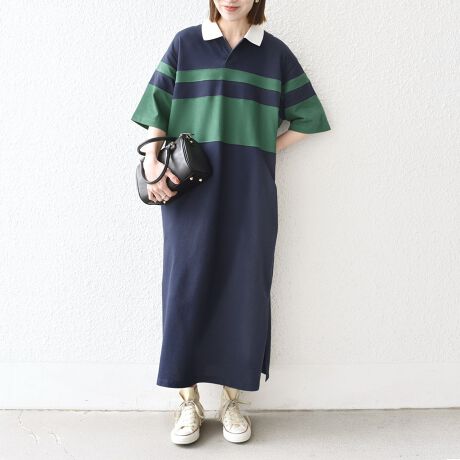 SHIPS any:〈洗濯機可能〉カノコ ワイドボーダー ポロシャツ ワンピース