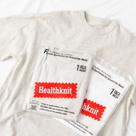 一枚で着た時のカッコよさを求めサイズを微調整し、Healthknitへ別注したパックTシャツです。