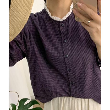 クラシックなギンガムチェック柄が特徴のラウンドネックブラウス。綿100%素材を使用し、柔らかく肌触りが良く着心地抜群です。通気性にも優れており、季節の変わり目や春秋にぴったりの一枚です。