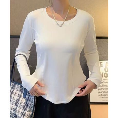ラウンドネックフィット長袖トップス