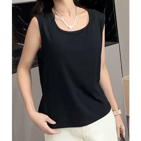 ラウンドネックラインと裾のフレアデザインが特徴のタンクトップ。シンプルながらも、女性らしいディテールで、柔らかな印象を与えます。リラックス感のあるシルエットでありながらもスタイリッシュです。