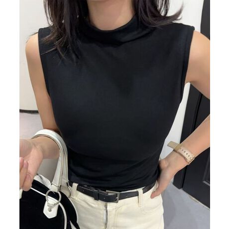 シンプルなデザインのハイネックタンクトップ。体にフィットする美しいシルエットと、すっきりとしたハイネックが特徴です。シンプルながらもスタイリッシュで、ワードローブに欠かせないアイテムです。