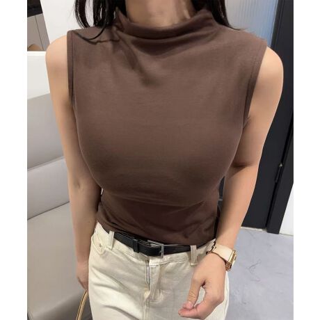 シンプルなデザインのハイネックタンクトップ。体にフィットする美しいシルエットと、すっきりとしたハイネックが特徴です。シンプルながらもスタイリッシュで、ワードローブに欠かせないアイテムです。