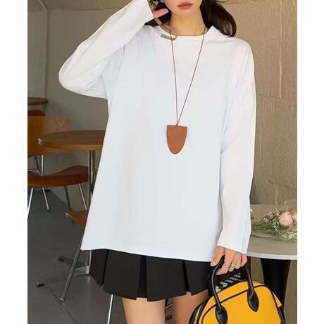 シンプルでスタイリッシュなデザインのロングスリーブトップス。サイドにスリットが施されており、リラックス感のあるシルエットが特徴です。シンプルながらもおしゃれな印象を与え、日常的に活躍するアイテムです。